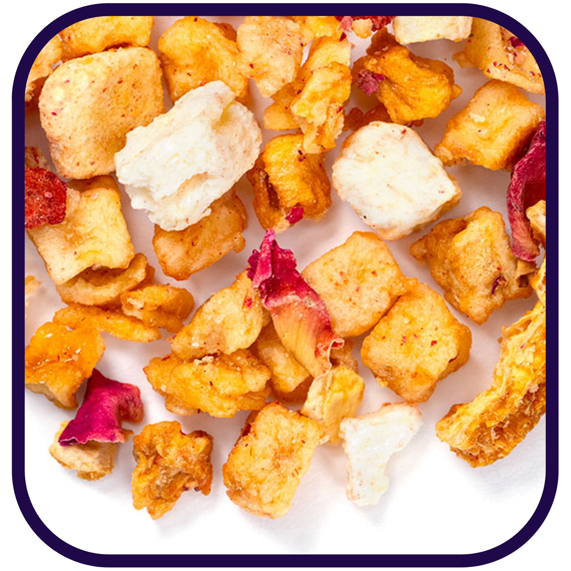 Ingredients: Apple Pieces, Orange, Natural Peach Flavor, Peach Pieces, Pineapple Pieces, Mango Pieces, Rose Petals, Strawberries & Papaya Flavor