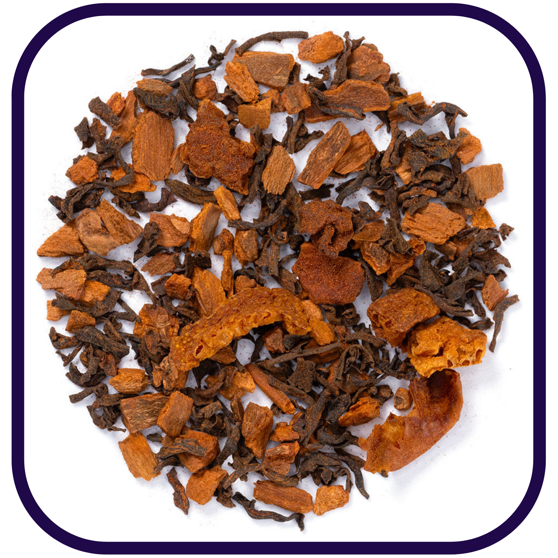 Ingredients: cinnamon, black tea, cinnamon ground, orange, natural spicy cinnamon flavor & cloves