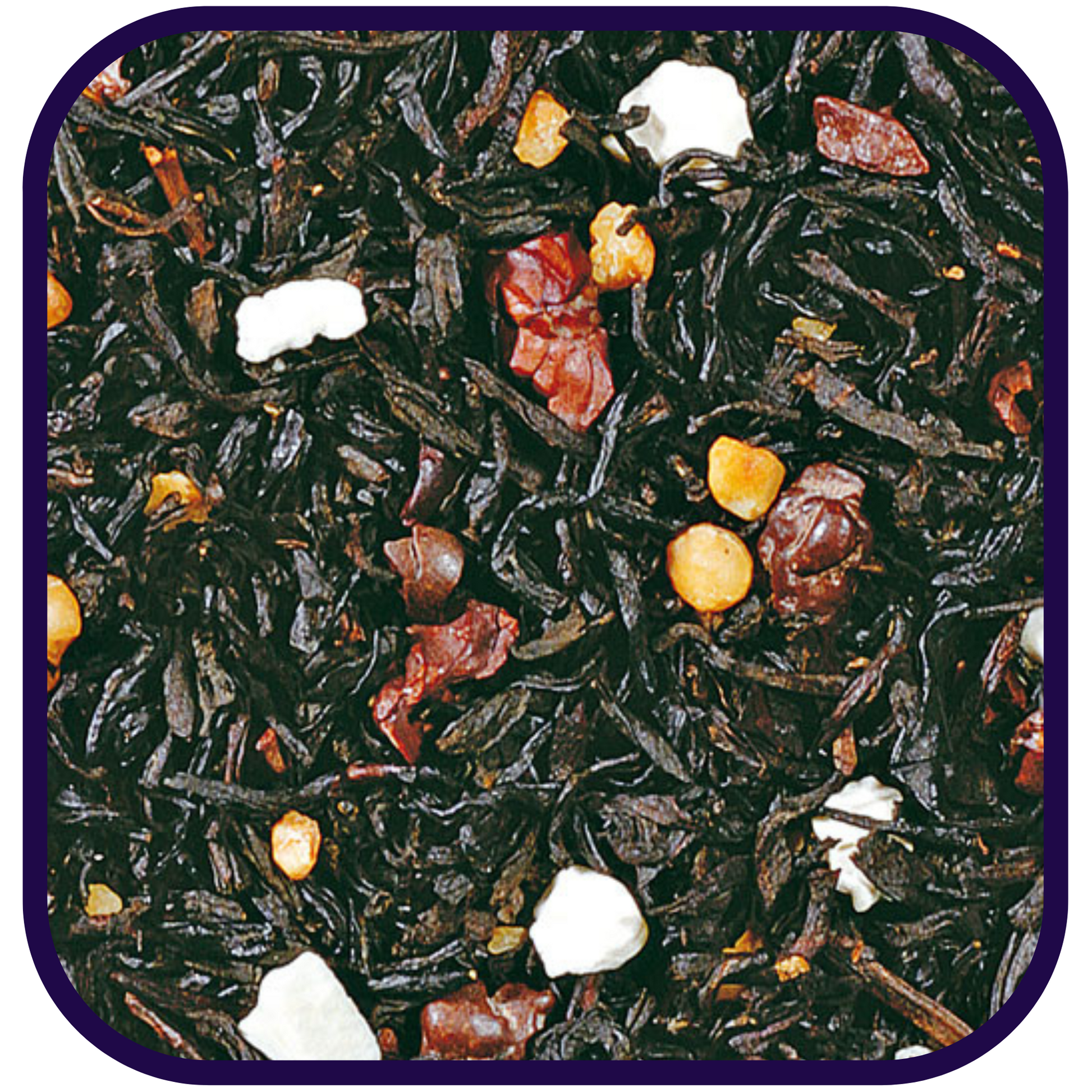 Ingredients: black tea (74 %), cocoa nibs, brittle pieces (sugar, hazelnuts, invert sugar), chocolate chips (sugar, cocoa mass, cocoa powder, emulsifier: soy lecithin), flavoring, coffee beans, freeze-dried yogurt granules (skimmed milk yogurt, sugar, maltodextrin, modified starch, acidifying agent: citric acid)