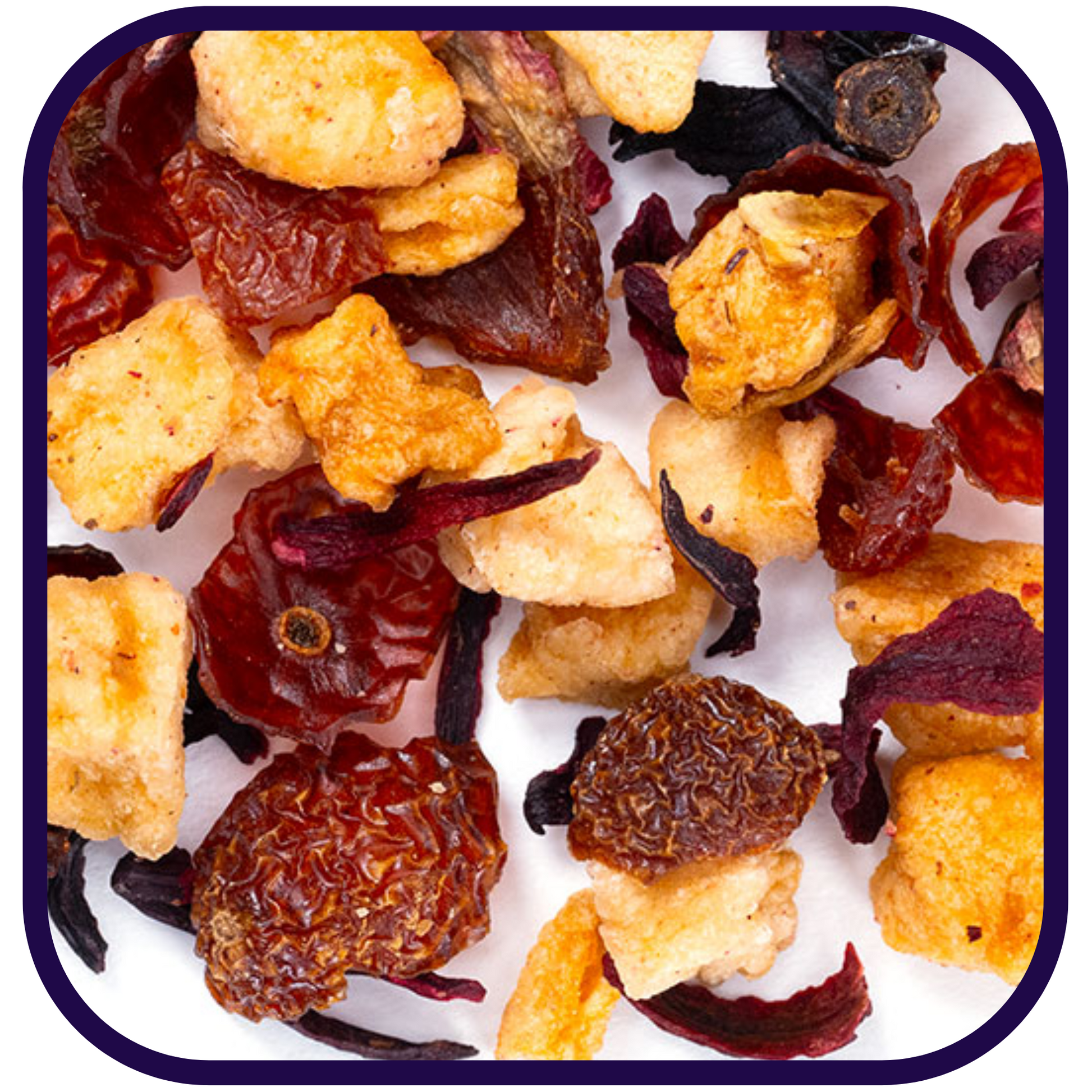 Ingredients: apple pieces, hibiscus, rose hips & natural apple flavor
