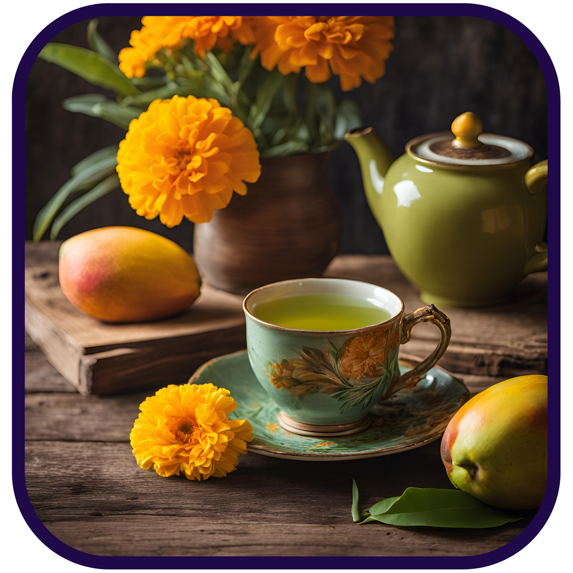 Ingredients: green tea, natural mango flavor, apple pieces, mango pieces & marigold flowers