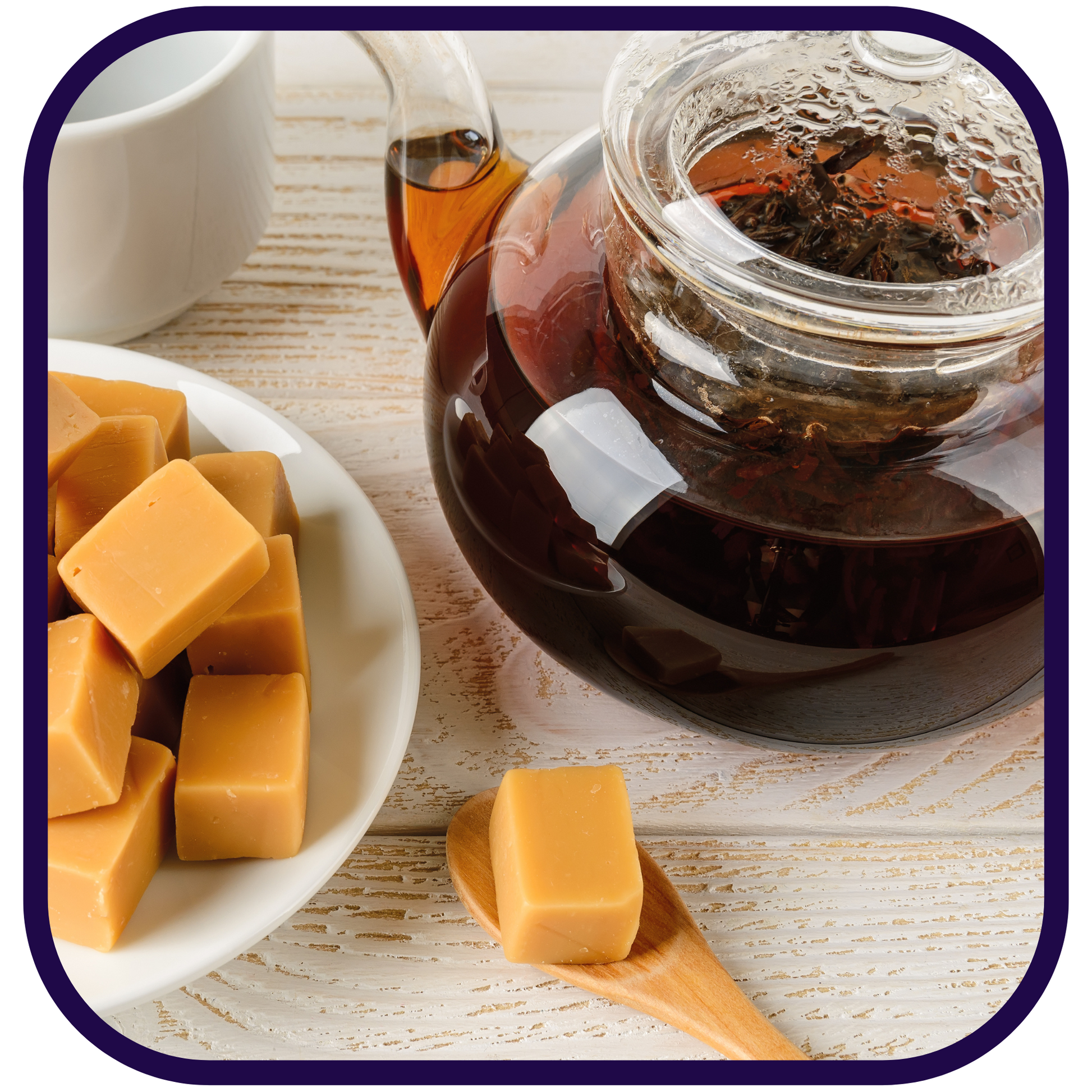 Ingredients: Black Tea, Natural Caramel Flavor, Cocoa Nibs, Natural Vanilla Flavor & Natural Chocolate Flavor